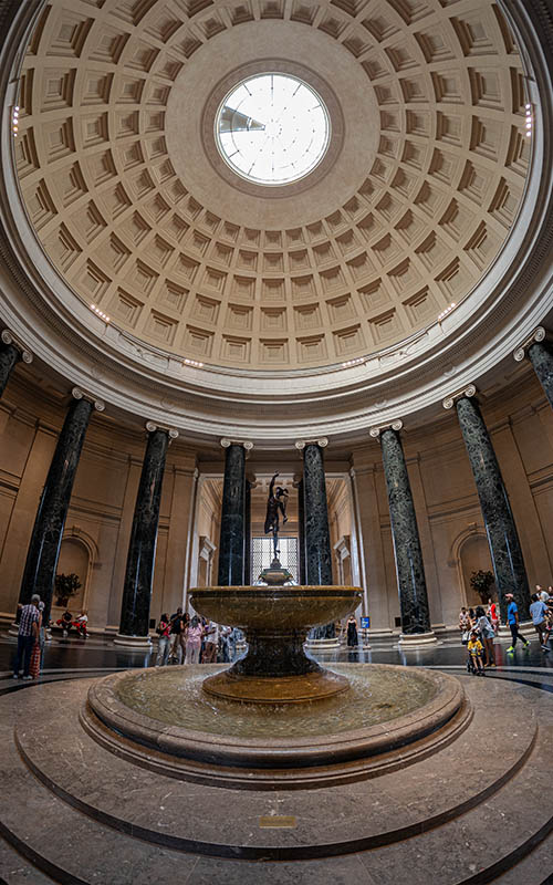 In der Nachmittagssonne liefen wir zu unserem letzten Halt für heute: die „National Gallery of Art“. Aufgeteilt in ein Ost- und Westgebäude findet man dort Kunst vom Mittelalter bis heute. Im West Building gab es Kunstgeschichte auf mehreren Etagen zu bestaunen. Alleine die Skulpturenausstellung war gigantisch. Kunstwerke wurden nach Jahrhundert und Herkunftsland unterteilt. Uns gefielen besonders die Gemälde der italienischen Renaissance und der niederländischen Künstler. Neben wunderschönen Gemälden gab es zwischen den Ausstellungsräumen noch riesige Gänge und Hallen mit einer offenen Kuppel mit „Hermes“- Springbrunnen darunter und einen Indoor Garten zu bestaunen. Alleine im Westgebäude verbrachten wir mehrere Stunden.