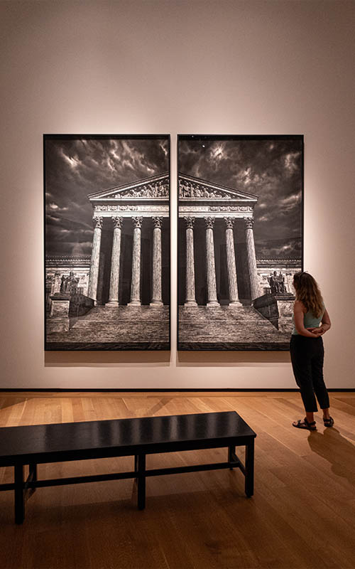 Nach einer kleinen Kaffee- und Verschnaufpause nahmen wir noch die moderne Kunst im Ostgebäude in Angriff. Dieses Gebäude ist glücklicherweise deutlich kleiner (die gleiche Menge hätten wir wohl nicht mehr geschafft). Von Installationen über Fotografien und Gemälde gab es hier jede Menge modern und contemporary Art zu sehen. Die offene Gebäudestruktur mit großen Treppenaufgängen gefiel uns auch sehr gut. Besonders beeindruckt haben uns hier die Bilder von Robert Longo. Auf gigantischen, mehrteiligen Leinwänden zeigt er neben dem Kapitol auch das Weiße Haus und den Supreme Court. Was auf den ersten Blick wie ein Foto aussah, entpuppte sich als Kohlegemälde! Richtig toll und ein schöner Abschluss für diesen ereignisreichen, geschichtsträchtigen und unseren persönlich letzten Tag in Washington.
