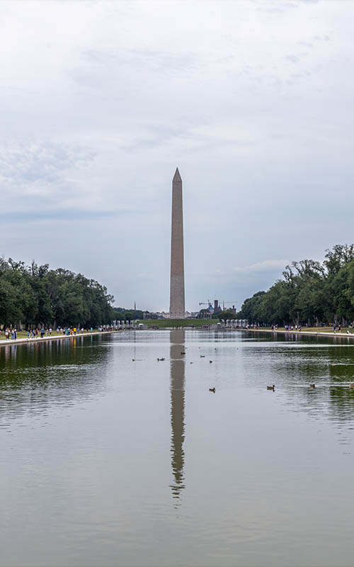 Heute war es mit „nur“ 27 Grad regelrecht kühl und dank des bewölkten Himmels auch sehr angenehm. Wir umrundeten das Kapitol (das Innere schauen wir uns morgen an) und liefen bis zum „Washington Monument“. Der riesige Obelisk mit seinen 169 Metern Höhe ist schon von Weitem zu sehen. Er wurde zu Ehren des ersten Präsidenten der USA errichtet und galt bei seiner Fertigstellung 1884 als höchstes Gebäude der Welt. Auch wenn er das mittlerweile nicht mehr ist, ist der riesige Turm dennoch beeindruckend. Patriotisch umringt von unzähligen Landesflaggen, war es ein toller Anblick. Ein weiterer Fußmarsch brachte uns bis zum „Lincoln Memorial“. Das zwischen 1915 und 1922 erbaute Gebäude wurde zu Ehren Abraham Lincolns, dem 16. Präsidenten der Vereinigten Staaten, erbaut. Der im griechischen Stil geprägte Bau wird leider momentan restauriert, man konnte aber trotzdem ins Innere, in dem die riesige Lincoln Statue zu sehen ist.